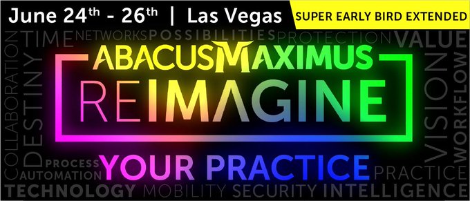 @AbacusLaw We’ve extended Super Early Bird tickets until Friday March 8! Don't miss your last chance to lock in your discount to the premier technology conference for legal and accounting professionals. Register now! https://t.co/3HU5Ttteoo #AbacusMaximus #REIMAGIbit.ly/2EOMgUFoo #AbacusMaximus #REIMAGINap